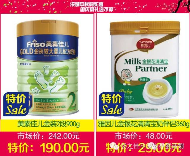 美素佳儿,明一,多美滋,贝因美,人之初,澳仕卡牛,雅士利,西北羊,聪贝优,伊利,美赞臣,雅培,惠氏,百立乐,喜安智,培芝,全场活动价回顾